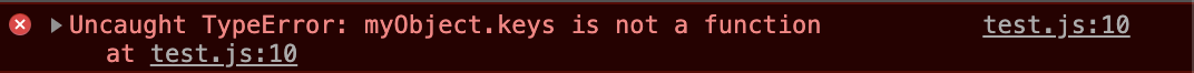 일반적으로 생성한 객체에는 keys라는 메서드는 존재하지 않는다.