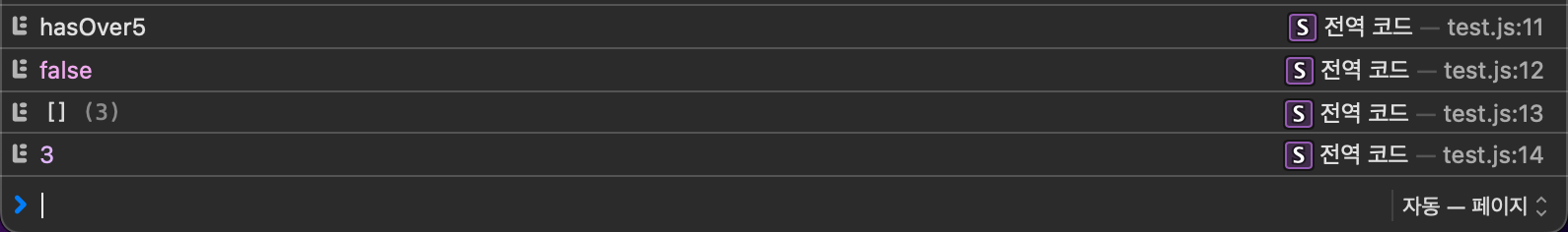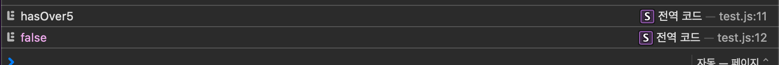 hasOver5는 true 로 결과는 똑같다. 하지만 콘솔에 찍힌 반복 횟수가 단 한 번이다.
